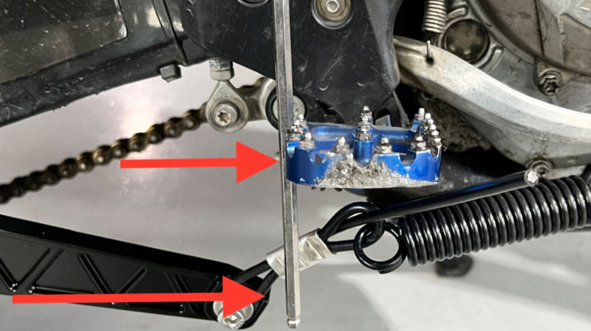 The way this works is it attaches to the swingarm of your dirt bike/supermoto and also onto your rear brake lever.