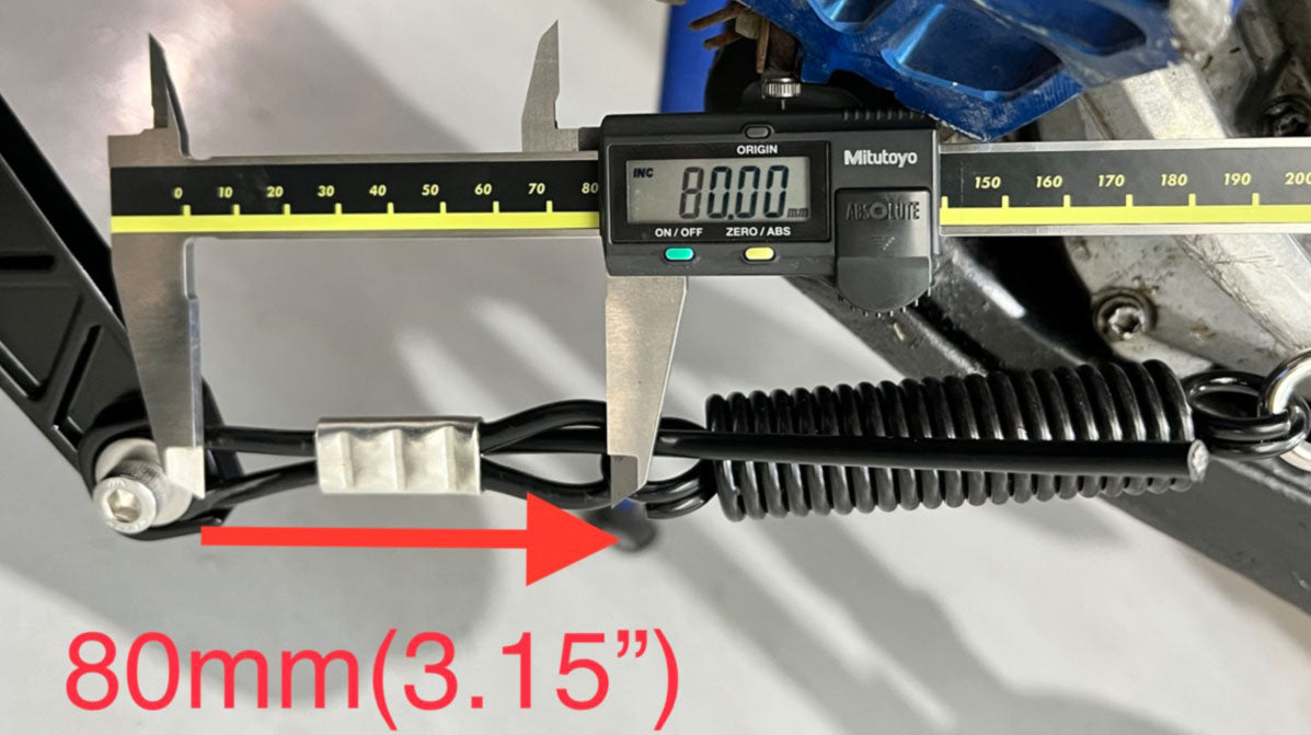 If you are using a Wheeliebar for the first time, a wire length of 80mm(3.15") is ideal. If it is longer, it can be dangerous.