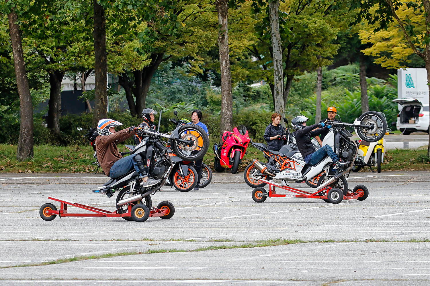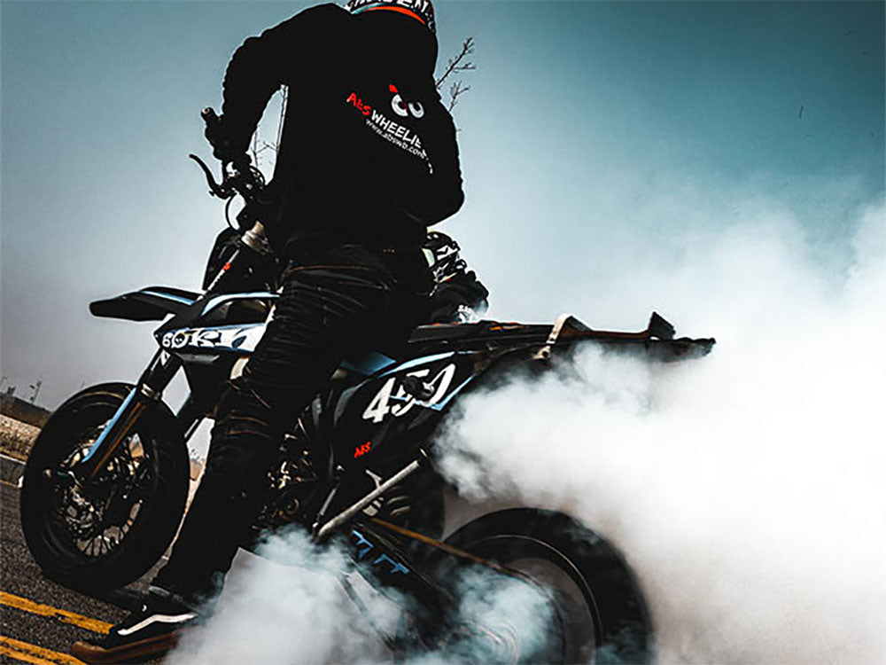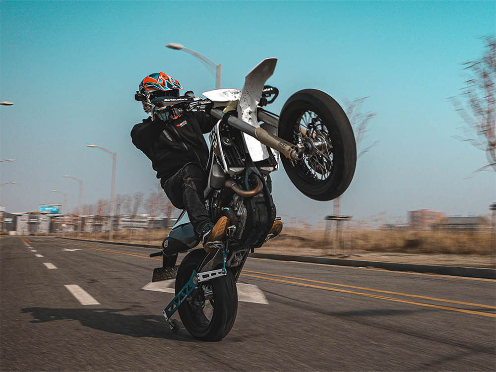 As the owner of a Wheelie Academy and founder of a metal processing company, he created the ABS Wheelie Bar to help riders learn wheelie skills safely. This device, developed through his expertise and years of testing, aims to prevent accidents caused by inexperience during wheelie practice.